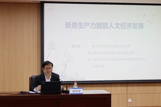 在报告最后,盛世豪教授强调,新质生产力在赋能人文经济发展的作用主要表现在:突出创新,使人的主体作用和价值进一步彰显;大数据、人工智能等使发展的人文导向人的全面发展成为可能;传统文化优势及其资源禀赋得到进一步激活和利用;文化产业创新发展、文化服务品质进一步提升;提升人文素质助推全要素生产率提高。