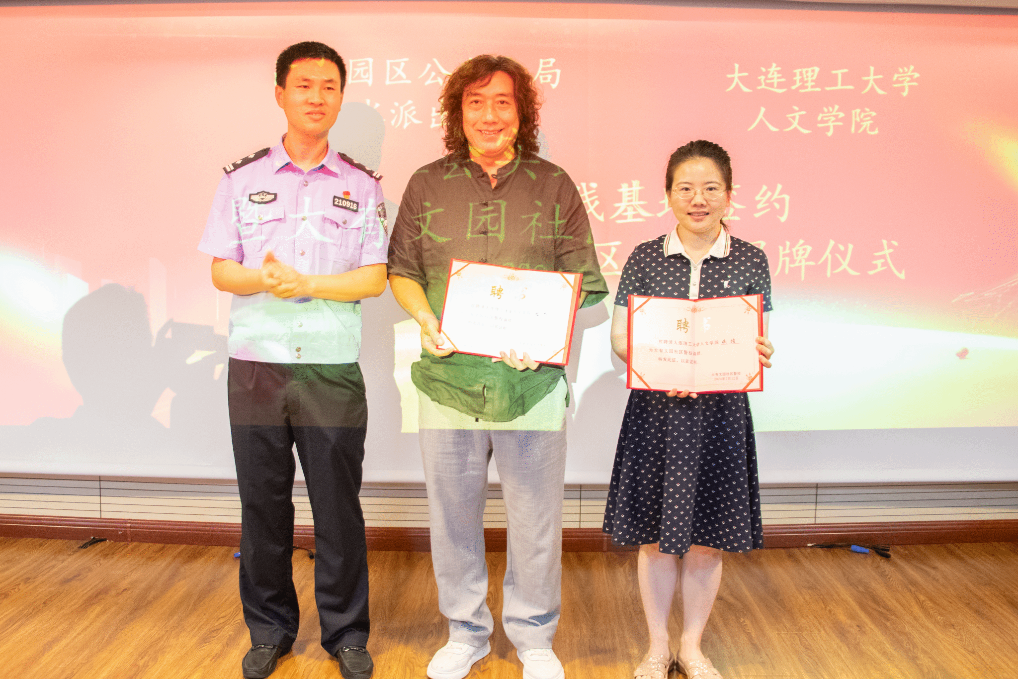 胡雪鹰处长、张远航书记、副局长李炜、副书记梁春艳分别为实践基地、大有文园社区警校揭牌。太阳成集团tyc122ccvip副教授赵岩、副教授张橦接受聘书。