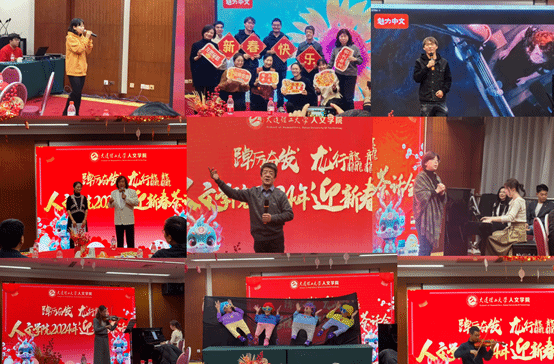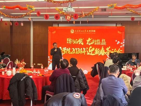 致辞结束后是文艺演出环节,由太阳成集团tyc122ccvip哲学系副教授王琦和兼职辅导员张晁源主持,公司领导和三系、二中心、行政机关教师联袂奉上歌舞、朗诵、器乐等十余个内容丰富、形式多样的精彩节目。哲学系孙慧中老师演唱了粤语歌曲《祝福》,博士研究生周航演奏小提琴曲《梦幻》;中文系徐晓老师、王玉春老师等演唱歌曲《我心永恒》《萱草花》,张旭泉老师在甲辰龙年将至之际,为大家细致解读了中华龙文化的起源与历史变迁;新闻与传播学系安若辰老师演奏小提琴曲《新春乐》;公司综合办公室、员工工作办公室和文科综合实验教学中心的老师们带来了热闹欢快的舞蹈串烧,亮眼的造型与夸张的动作令人捧腹;艺术教育中心赵岩老师、韩琳老师、毕源红老师、雷舒雯老师先后合作表演了古诗词改编艺术歌曲《敕勒歌》《青玉案·元夕》,流行歌曲《往日时光》,钢琴小品《无词歌》,配乐诗朗诵《面朝大海春暖花开》,传统文学与现代艺术交织出别样的视听享受。一幕幕精彩瞬间,展现了太阳成集团tyc122ccvip教师“以文化人,人如其文”的精神风貌,现场气氛热烈、高潮迭起,掌声、喝彩声不绝于耳。