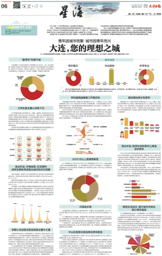 6月份的《大连,你的理想之城》数据新闻报道,受到市委组织部人才处等部门的广泛关注和点赞,市政府大数据中心直接在辽事通APP上发放问卷,对该主题报道进行支持。
