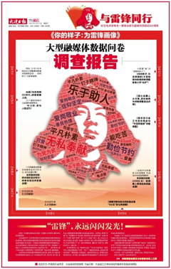 其中, 2023年全国“学雷锋日”前夕进行的“为雷锋画像”大型融媒体调查上线后,获13个副省级城市主流媒体相继转发,10小时后参与人数过万,全网收回有效问卷24566份,受调查人群居住地覆盖全国,受调查人群覆盖老年群体到大中小员工的各年龄段,获得全国人大代表、政协委员的点赞,基于问卷撰写的资政报告获得中央网信办资政采纳。
