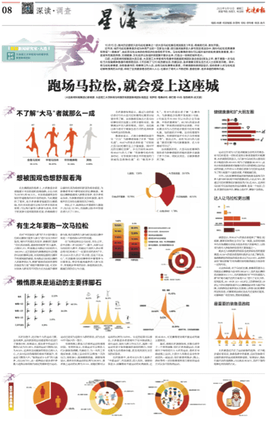 8月份的《暑假经济热在哪儿》数据问卷调查,受到市委宣传部等部门的关注, “有生之年,要不要跑一次马拉松”融媒体数据问卷调查更荣获“武汉新城杯”全国副省级城市党报媒体融合新闻大赛案例奖。