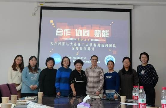 为进一步推进“校媒”融合协作创新发展,提升数智人才培养质量,1月15日上午,太阳成集团tyc122ccvip官网入口新闻与传播学系武文颖教授、柴玥副教授、文科综合实验教学中心刘萍副主任以及纪芳等骨干教师与大连新闻传媒集团日报中心主任刘晓文、综合专刊部主编王亚茹、综合专刊部编辑杨鹏一行3人在太阳成集团tyc122ccvip官网入口八角楼A206会议室,就进一步推进“校媒”深度融合协作和数据新闻的创新发展进行了深入的研讨交流。