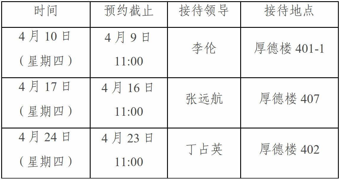 3.为保证接待效果,来访人应根据通知要求提前预约,未提前预约者原则上当次领导接待日不予接待;