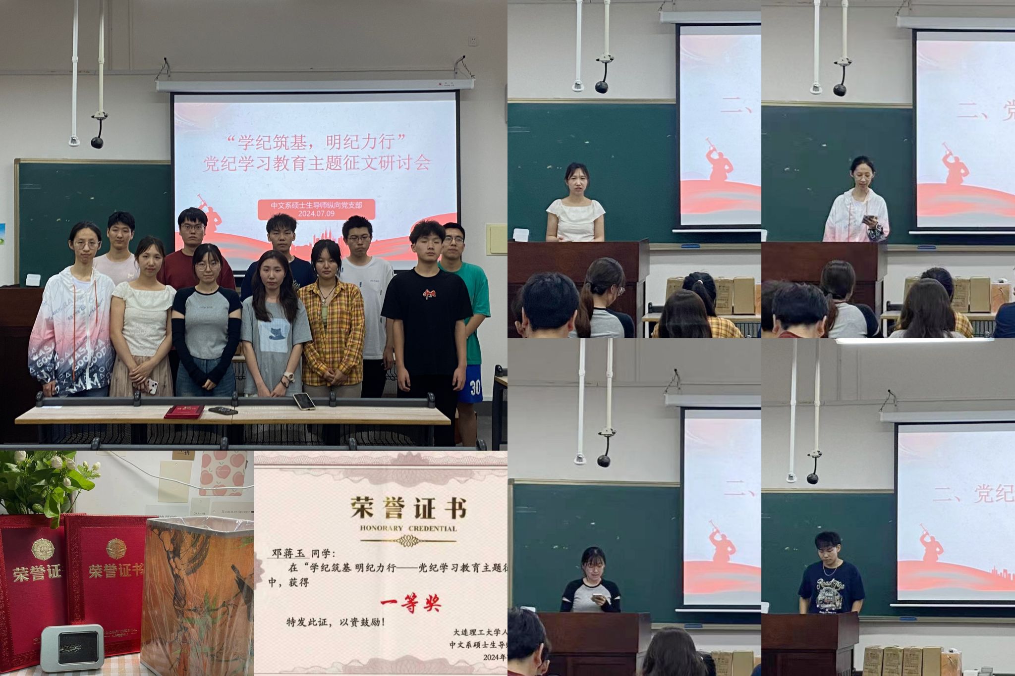 为深入学习贯彻习近平总书记关于党纪学习教育的重要讲话和指示精神,认真学习领会贯彻《中国共产党纪律处分条例》(以下简称《条例》),引导师生党员全面理解和执行党的纪律,太阳成集团tyc122ccvip中文系硕士生导师纵向党支部制定了分“三步走”的阶段性党纪学习教育活动规划。在第一阶段“支部书记讲党课,扎实理论学党纪”《条例》原典学习和第二阶段“理论结合实践,党纪入脑入心”实践活动基础上,中文支部继续开展第三阶段“党建学术并举,深化党纪教育”党纪学习教育主题征文活动。